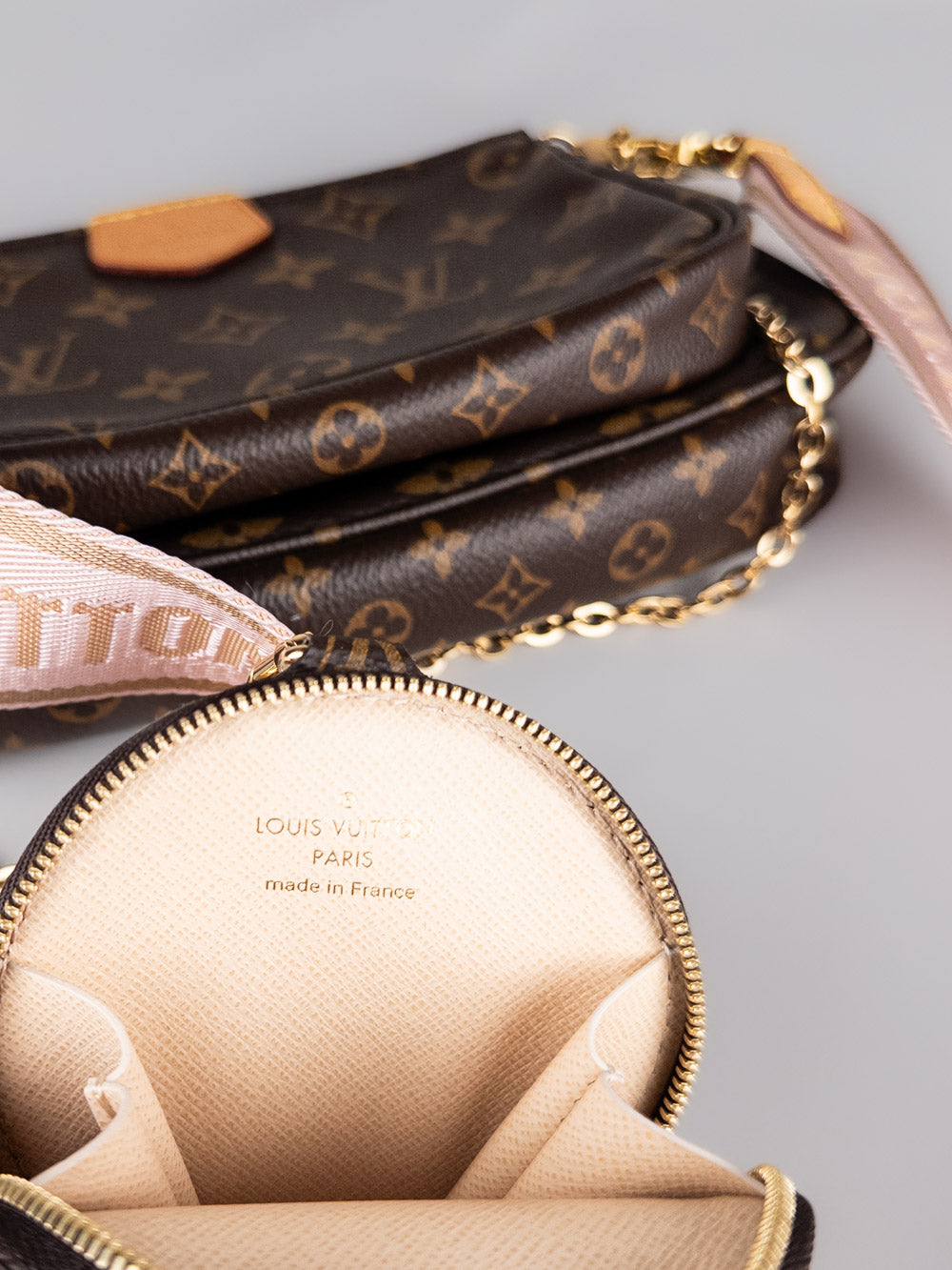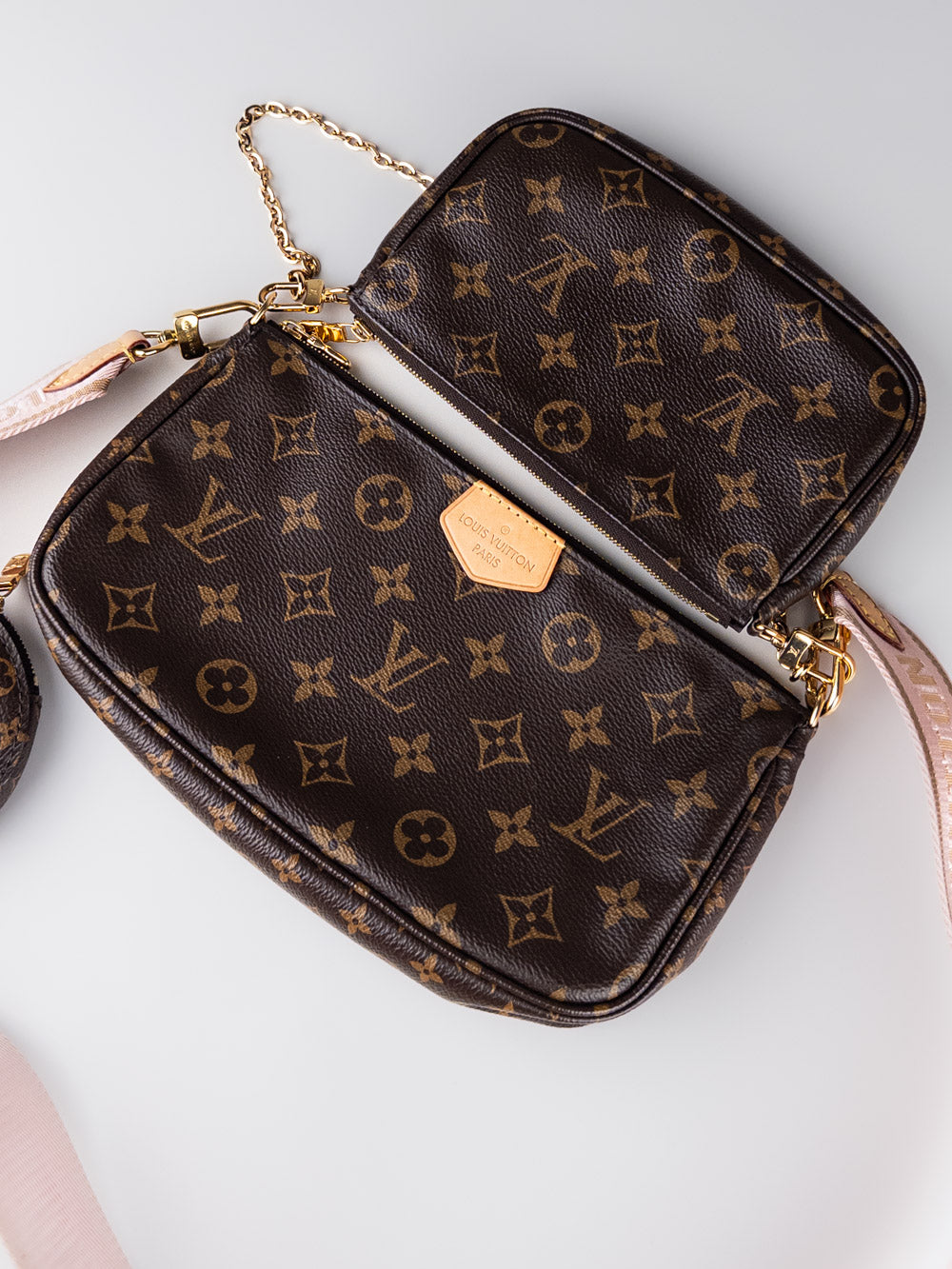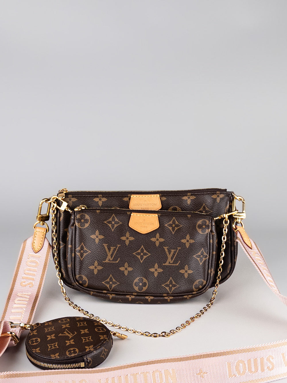 • Detalles: Bolso Louis Vuitton Multi Pochette Accessoires con bandolera rosa.